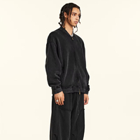 Vintage yıkanmış sıkıntılı fermuar kazak Unisex polar astarlı standı yaka sonbahar kış rüzgar geçirmez rahat kazak
